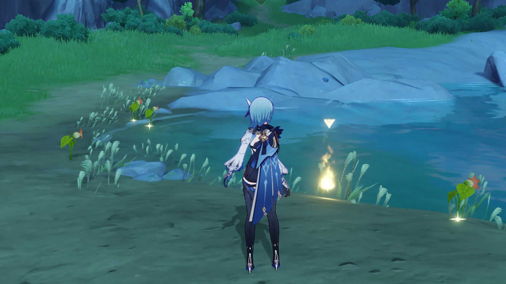Отправляйтесь на другую сторону озера, где под скалой героя уже поджидает девушка. Соберите цветы лилии каллы , растущие здесь же, так как они пригодятся для возвышения Кэйи.