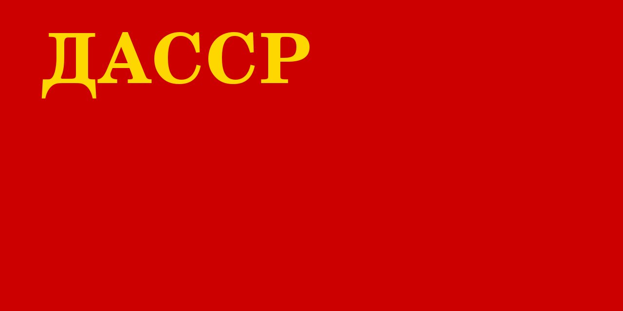 - 1925 год – красный, с желтой аббревиатурой ДАССР;