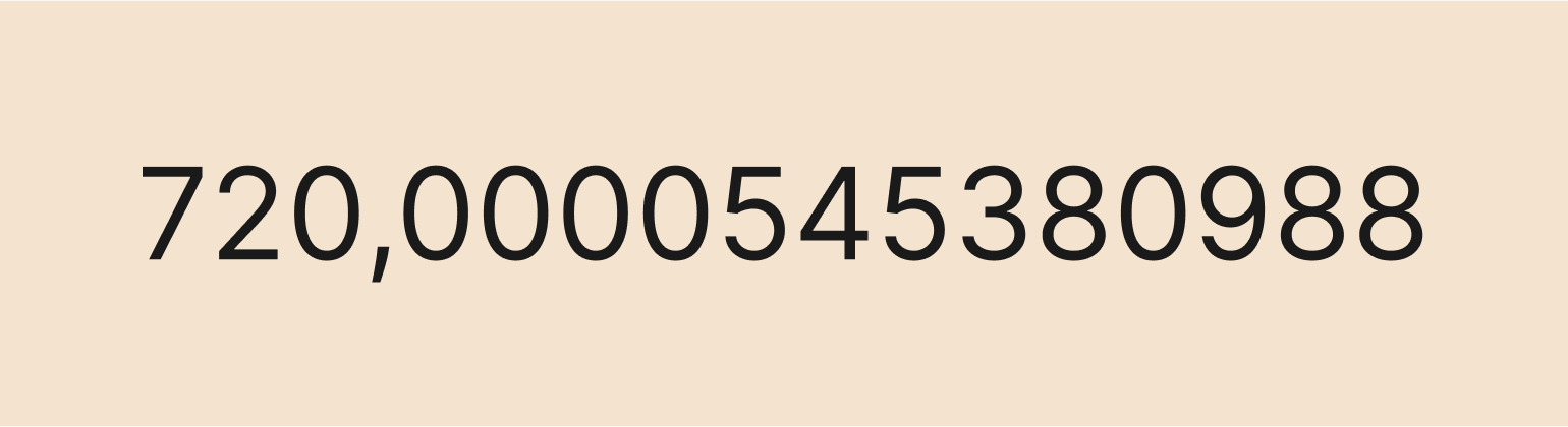 Получили приближённое значение настоящего факториала, который равен 720. Но можно сделать ответ и более точным. Для этого нужно добавить больше знаков после запятой всем переменным — например, если взять 20 знаков, то ответ будет таким: