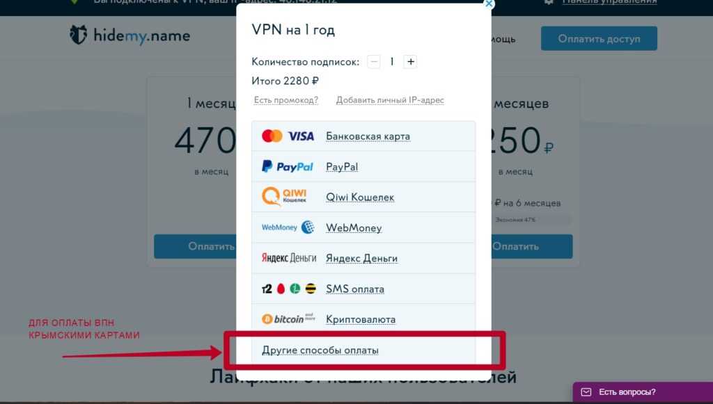 - Скачиваем, устанавливаем и оплачиваем VPN: ссылка для загрузки и покупки. Мы используем ВПН Hideme. Стоит это на месяц, как чашка кофе. Но мы рекомендуем оплачивать сразу на год, т.к. оптом дешевле. С ним можно не только подключаться к Zoom в Крыму, но и смотреть фильмы, посещать сайты. Для оплаты картой МИР (Крымских банков, например, РНКБ) при оплате нужно выбрать пункт «Другие способы оплаты».